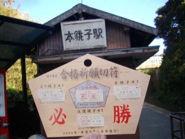 本銚子駅へ向かう途中、踏み切りでとまっていたらちょうど電車がやってきた。