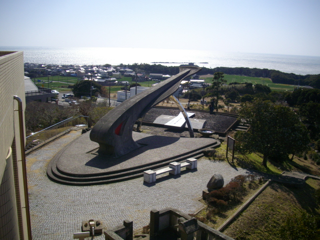 この斜塔は友愛の浄火をかたどったもので、炎の先端は遠く洋上3,000kmのフィリピン、マヨン山(マニラ富士と呼ばれています)に向かって建てられています。