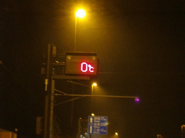 箱根峠、気温ゼロ度。